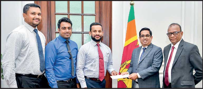 The donation was handed over to Secretary to the President, Dr. Nandika Sanath Kumanayake by representatives of the Association Deshan Rajapaksa, Samudika Perera and Devshan Rodrigo.